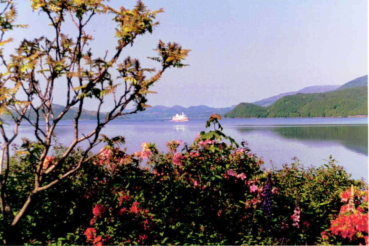 The morning boat for Inverary seen from Sir Fitzroy's inn The Creggans